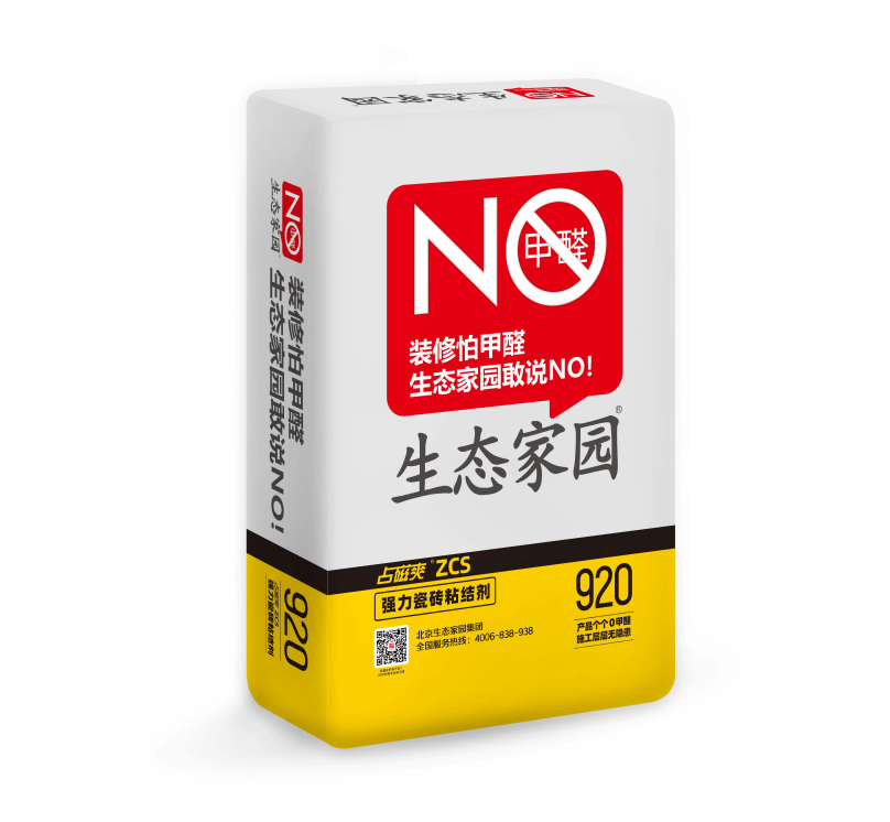 “生態家園的占磁爽ZCS920強力瓷磚粘結劑”它是一種聚合物改性的水泥基瓷磚粘結劑,其施工操作性能、粘結性能等較之傳統的水泥砂漿有大幅度改善。