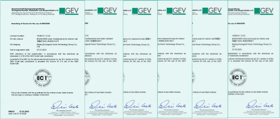 致力于內墻產品和施工安全無隱患是生態家園堅持的使命。專注于內墻環保產品的研發、制造,關注施工過程及居住感受時刻體現著“保護環境、關注用戶、呵護工長”的企業價值觀,為此在環保的堅持上我們從不松懈,繼中國十環、法國A+等國際、國內認證之后再次榮獲德國GEV—EMICODE環境標志最高等級EC1plus認證。