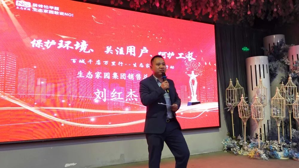 生態家園集團也不負所望,23年不斷升級迭代,在國家政策的大力支持下,緊跟時代的步伐在產品研發、設備升級、智能化轉型等方面都取得了可人的成績,在全國銷售總監劉紅杰關于保障產品穩定性的分享中提到生態家園集團在設備和智能化方面所做的投入與力度,產品從下單、生產、包裝、配送整個流程的完善體系,只為讓一線的工長們做到施工層層無隱患;關于產品環保性的分享中提到生態家園集團先后取得了中國十環、法國A+、德國GEV-EC1 plus、芬蘭M1等國內外嚴苛的環保認證,為產品品質保駕護航;關于品牌提升上我們敢為行業先列,首家進行高鐵列車冠名廣告,借助中國高鐵速度急速推進品牌影響力,為讓全國甚至全世界的裝修業主享受環保且高品質的產品和服務。