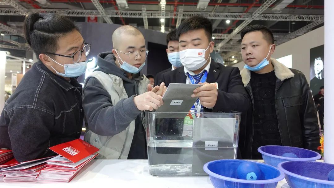 此次展會上最受矚目的便是生態(tài)家園耐水膩子的試驗,兩塊同樣面積體積的通用膩子與耐水膩子同時浸入水中,經(jīng)過72小時的浸泡,通用膩子表面粉化脫落嚴重,而耐水膩子依然如故,簡單的實驗真實地讓觀展者感受到了生態(tài)家園耐水膩子的硬度與耐水性。這也給常年受陰雨、潮濕天氣所困的南方老百姓及輔材行業(yè)代理商們一針強心劑。
