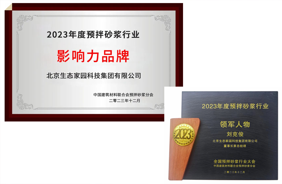 為此在年會上,北京生態(tài)家園科技集團(tuán)有限公司榮獲2023年度預(yù)拌砂漿行業(yè)“影響力品牌”,董事長劉克俊先生榮獲2023年度預(yù)拌砂漿行業(yè)“領(lǐng)軍人物”,在未來發(fā)展中,生態(tài)家園集團(tuán)將在董事長劉克俊的帶領(lǐng)下堅持以綠色發(fā)展為基石,推動科技創(chuàng)新,繼續(xù)發(fā)揮副理事長單位的作用,為推動我國砂漿行業(yè)的發(fā)展貢獻(xiàn)力量。
