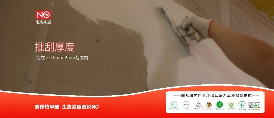 2.批刮找平:膩子找平應在半干狀態下(用手輕壓不變形)完成,批刮膩子厚度應在0.50mm-2mm之間,超過2mm應分次批刮。