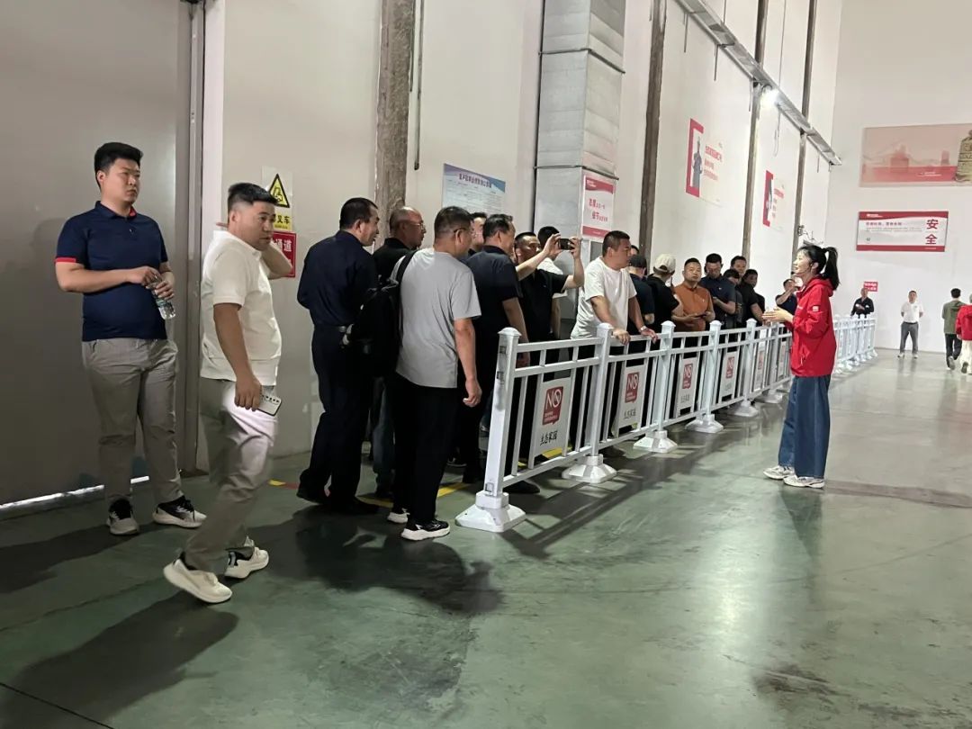 隨后,參觀團(tuán)進(jìn)入干混砂漿生產(chǎn)車(chē)間(2 號(hào)車(chē)間)。德國(guó)進(jìn)口的回旋式自動(dòng)旋轉(zhuǎn)包裝機(jī)與 DCS 智能控制系統(tǒng)構(gòu)成高效生產(chǎn)線,通過(guò)雙控系統(tǒng)實(shí)現(xiàn)從原料配比到成品包裝的全流程自動(dòng)化。值得關(guān)注的是,車(chē)間配備亞洲僅有的 8 口旋轉(zhuǎn)式包裝設(shè)備,單條產(chǎn)線每小時(shí)產(chǎn)能達(dá) 3600 袋,高位碼垛機(jī)效率更是機(jī)器人極限速度的兩倍。