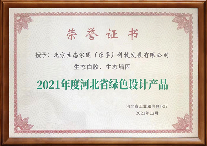 今年年初,根據河北省綠色制造體系建設工作部署和相關規定,經嚴格的審核程序,2021年度,河北省工業和信息化廳將5家企業生產的6個產品納入2021河北省綠色設計產品名單中。其中,我司旗艦工廠北京生態家園(樂亭)科技發展有限公司生產的“生態白膠”和“生態墻固”兩個產品一同入選2021年河北省綠色設計產品名單。