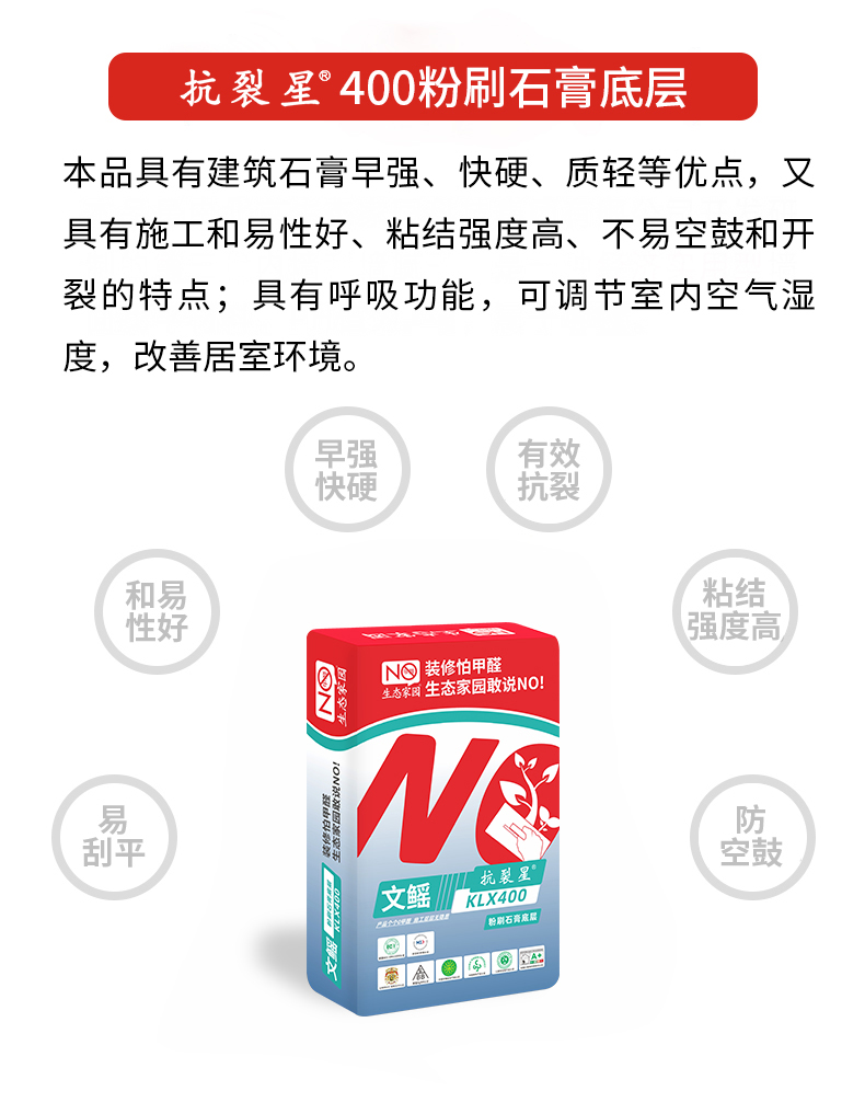 本品是由石膏、水洗砂、碳酸鈣及多種有機添加劑混合而成的新型內墻面基層抹灰材料。具有建筑石膏早強、快硬、質輕等優點,又具有施工和易性好、粘結強度高、不易空鼓和開裂的特點;具有呼吸功能,可調節室內空氣濕度,改善居室環境。